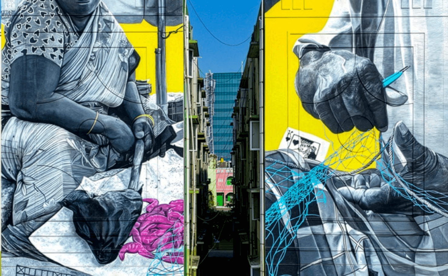 In the heart of the Nochi Art District, this mural was done by artist A-Kill, and assisted by me. It presents a commentary on the intricate labor dynamics of the local fishery colony.