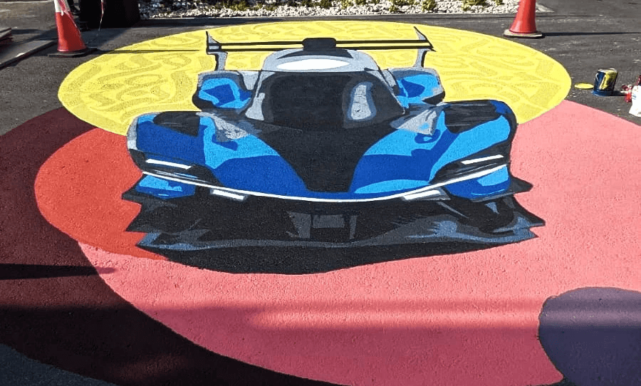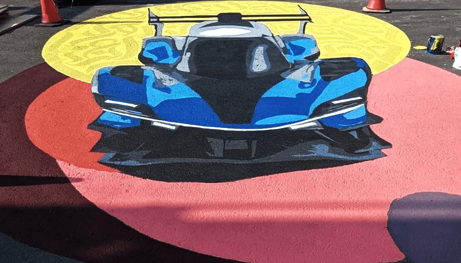 Immersive 3D Art: Floor installations used optical illusions to simulate speed and depth, inviting fan interaction.